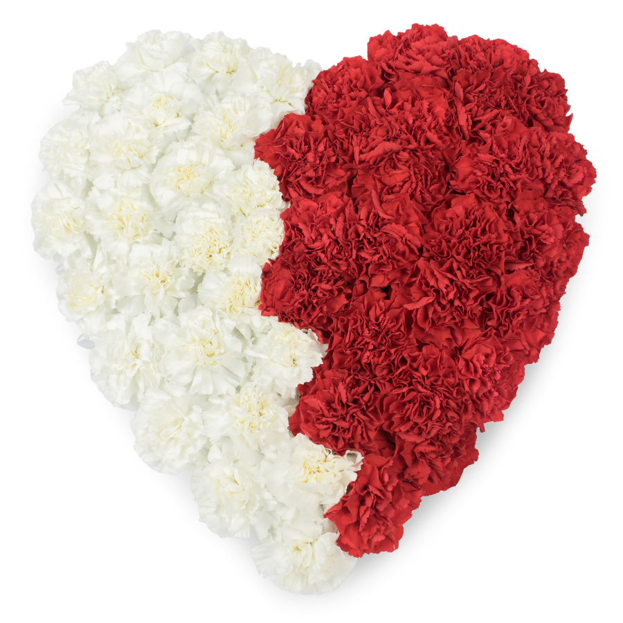 Discover the beauty and uniqueness of our heart-shaped arrangement, meticulously crafted with fresh white and red carnations. Each flower is hand-selected to ensure premium quality and vibrant colors that convey your heartfelt sentiments.